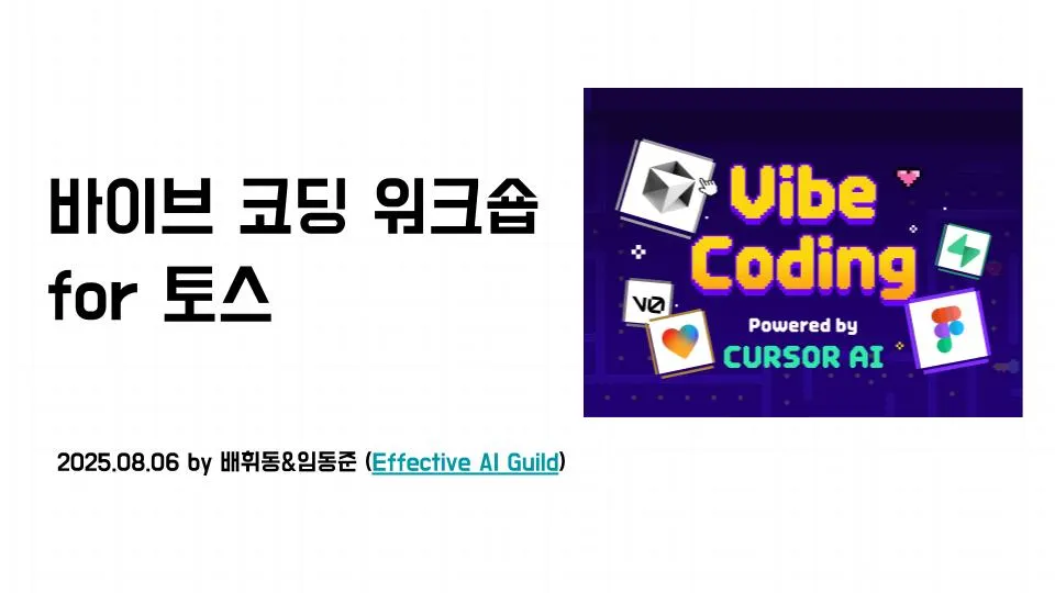 AI와 협업하여 비개발자도 실제 작동하는 프로그램을 만들 수 있는 '바이브 코딩(Vibe Coding)' 실습 워크숍. Cursor AI 기반의 실무 적용 가능한 생산성 도구 개발 방법론 교육.